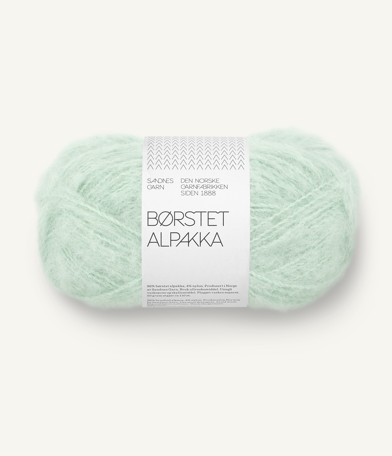 Børstet Alpakka består af alpakkafiber spundet sammen med en stærk nylontråd, som holder det hele sammen når alpakkafiberne bliver børstet op. Dette giver et blødt, let og luftigt garn med et loddent udtryk.