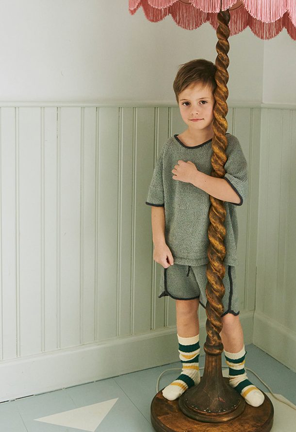 T-shirten strikkes ovenfra og ned, med I-cord kanter i kantrastfarve